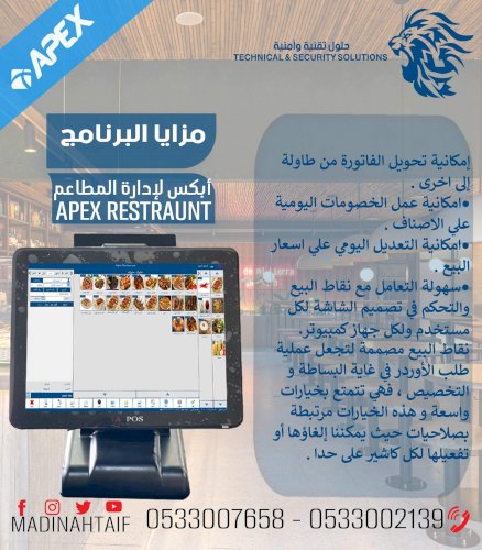 لمشاهدة فيديو شرح برنامج المطاعم والكافيهات ابكس APEX RESTRAUNT & CAFE