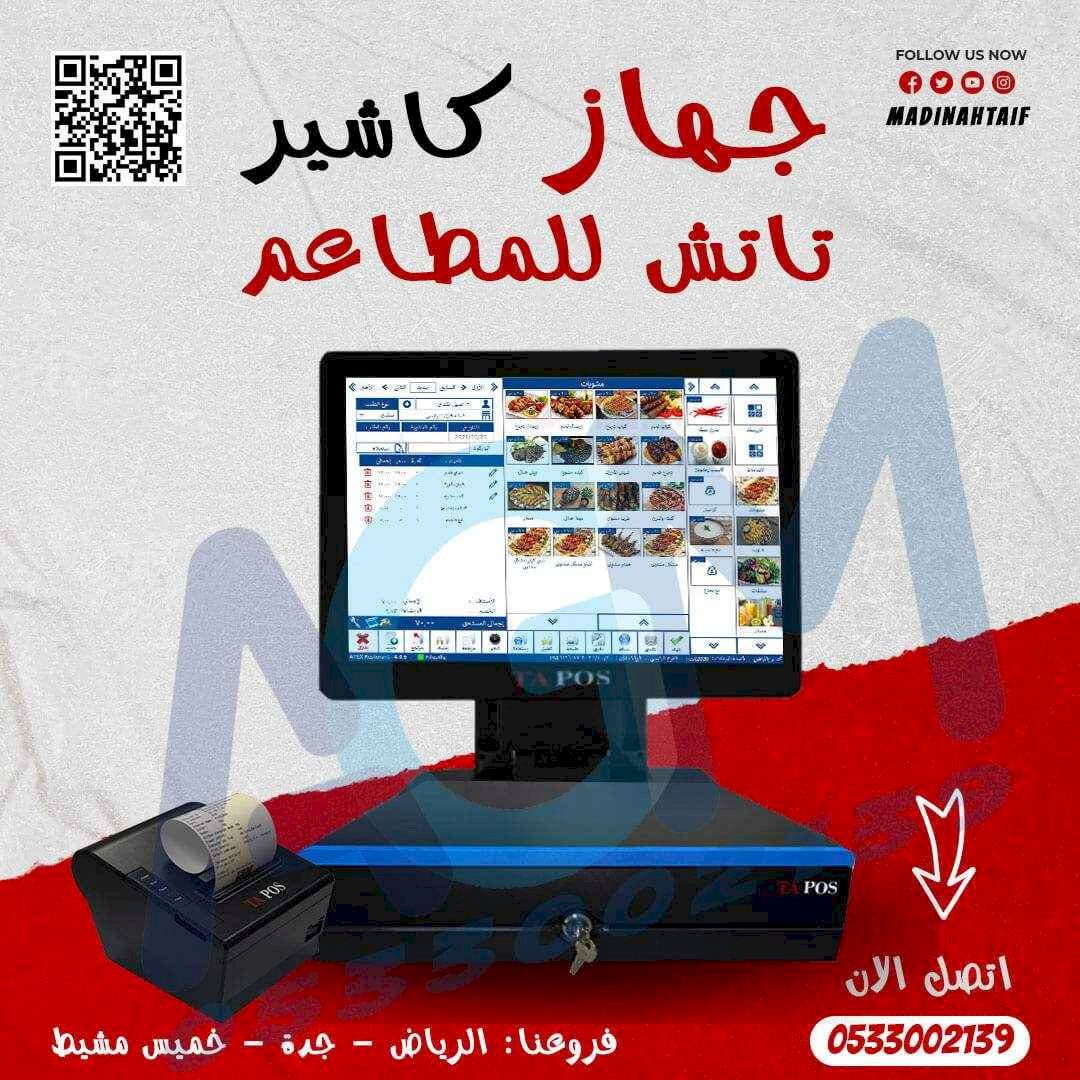 - شاشه تتش بها شاشة عميل ووافي فاي +بـرنـامج لادارة المـطاعـم والكـافـي شـوب (معتمد من هيئة الزكاة والضريبة والجمارك ويدعم الفاتورة الالكترونية) + طـابـعة ايصـالات حـراريـة + درج كـاشـيـر
