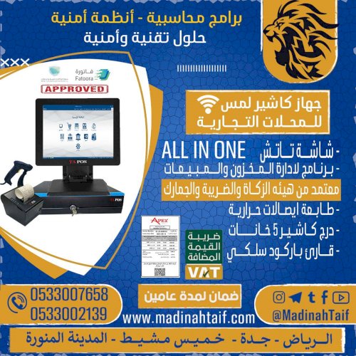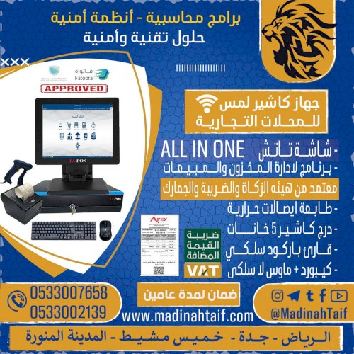 جهاز كاشير محلات تجارية مع برنامج يدعم الضريبة والفاتورة الالكترونيه