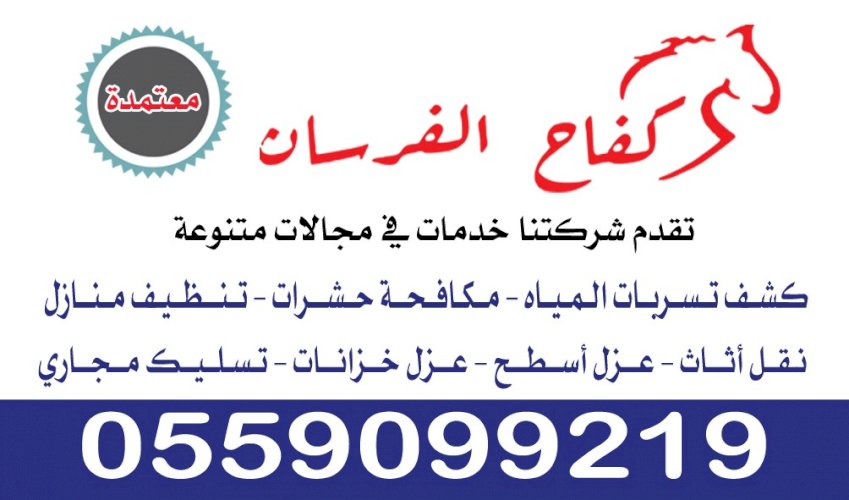 شركه كشف تسربات المياه وعزل بالرياض وتسليك مجارى شركة كشف تسربات المياه بالرياض 0559099219 عزل خزنات تسربات المياه من أسوأ المشاكل التي تواجها المباني، فتسربات المياه تشكل خطر كبير على المبنى والمتواجدين في المبنى، وتقدم شركة نسائم الفرسان العملاء المتواجدين في الرياض، تقدم الشركة شركة كشف تسربات المياه بالرياض لمساعدة العملاء على التخلص من هذه المشكلة الخطيرة. تقوم شركة كشف تسربات المياه بالرياض بحي الصفرات حي حطين حي الخزامي حي الرائد غرب الرياض شرق الرياض جنواب الرياض بمعالجة مشكلة التسرب بدقة ومهارة وفي الوقت نفسه بدون تكسير أو حدوث أي ضرر في المبنى، ليكون العميل راضي عن الخدمة المقدمة إليه من شركة الغدير، فتمكن الشركة العميل من التخلص من تسرب المياه في أي مكان في المبنى في الخزانات والحمامات والمطابخ وحتى في الجدران والأسطح، ف شركة كشف تسربات المياه بالرياض شركة لديها خبرة طويلة في هذا المجال مما يجعلها الشركة الأفضل التي يرتاح لها العملاء ويتعاملون معها باستمرار. تستخدم شركة كشف تسربات المياه بالرياض أفضل الأدوات وأحدث الأجهزة لتتم عملية كشف تسربات المياه بنجاح ودقة، تستخدم الشركة جهاز خاص بكشف التسربات مصنع من مواد النيتروجين وهذا الجهاز يمتلك الدقة لتحديد مكان التسرب والعطل لتتم إعادة تصليحه في أسرع وقت ممكن، ف شركة كشف تسربات المياه بالرياض هي أفضل شركة يمكنك التعامل معها وأنت مطمئن ومرتاح البال، لتترك العمل على الشركة وتتخلص من مشكلة تسريب المياه في منزلك أو في المكان الذي توجد فيه. تستخدم أيضا 0559099219 شركة كشف تسربات المياه بالرياض سماعة خارجية تحدد مكان التسريب، ويقوم فريق العمل بتصليح المكان بدون حدوث أي ضرر أو تكسير في المكان، ويوجد فريق عمل في الشركة حاصل على مستوى عالي من التدريب ليقوم بتقديم خدمة ممتازة للعميل، فتمتلك شركة كشف تسربات المياه بالرياض كل الامكانيات التي تجعلها أفضل شركة يمكنك التعامل معها في مدينة الرياض. شركة كشف تسربات المياه بالرياض ، ستتمكن من خفض فواتير المياه، وستتمكن من توفير السلامة للمبنى الذي توجد فيه، وستتمكن من التخلص من مشكلة تسربات المياه نهائيا بإذن الله. شركه تسليك وشفط بيارات بالرياض بجميع احياء الرياض وضواحيه حي الصفرات حي الرائد حي الخزامي حي حطين الدائري الغربي غرب وجنوب الرياض شركه مكافحه حشرات بالرياض افضل شركه تنظيف منازل بالرياض والخرج القصب شركه تسليك مجاري وشفط بيارات بالرياض شركه مكافحه حشرات بالرياض 0 شركه تنظيف خزنات بالرياض شركه تنظيف موكيت بالرياض شركه تنظيف بسدير والصفرات وحوطه سدير ضرما ثادق سدير الصفرات حوطه سدير شركه تنظيف منازل بالرياض افضل فى التنظيف والمكافحه الحشرات شركه تنظيف بيوت بالرياض شركه تنظيف بسدير الصفرات الحسي شركه تنظيف منازل بصلبوخ شركه تنظيف خزنات بمدينه الصفرات مع التعقيم شركه تسليك مجاري بالمجمعه مع الضغط شركه كشف تسربات بالرياض0 شركه مكافحه حشرات بالخرج شركه تنظيف خزنات بالمزاحميه 0 شركه تنظيف موكيت برغب شركه تنظيف مجالس بشقرا 0خدمات نظافة فلل شقق خزانات منازل شركة تنظيف فلل شمال الرياض شركة تنظيف فلل شرق الرياض شركة تنظيف فلل جنوب الرياض شركة تنظيف فلل غرب الرياض شركة تنظيف وسط الرياض غسيل خزانات مع العزل والتعقيم - غسيل مسابح مع التعقيم شفط بيارات وتنظيفها مع المواد الصفرات– تسليك مجاري بالضغط مكافحة جميع أنواع الحشرات الزاحفة والطائرة بمبيدات آمنة على الصحة العامة والأطفال كافة أعمال النظافة العامة للفلل - نظافة عامة للقصور - نظافة عامة للاستراحات نظافة عامة لبيوت الشعر - غسيل كنب ومجالس أرضية - موكيت – سجاد مع التعطيربمواد إيطالية نظافة واجهات زجاجية - تلميع أرضيات السيراميك بحي الرائد حي الهدا حي الصفرات- جلي رخام - جلى بلاط مع التلميع نظافة واجهات الحجر و الرخام بالرمل والصاروخ قسم خاص للمناقصات الحكومية الصفرات أسماء أحياء مدينة الرياض ( شمال و