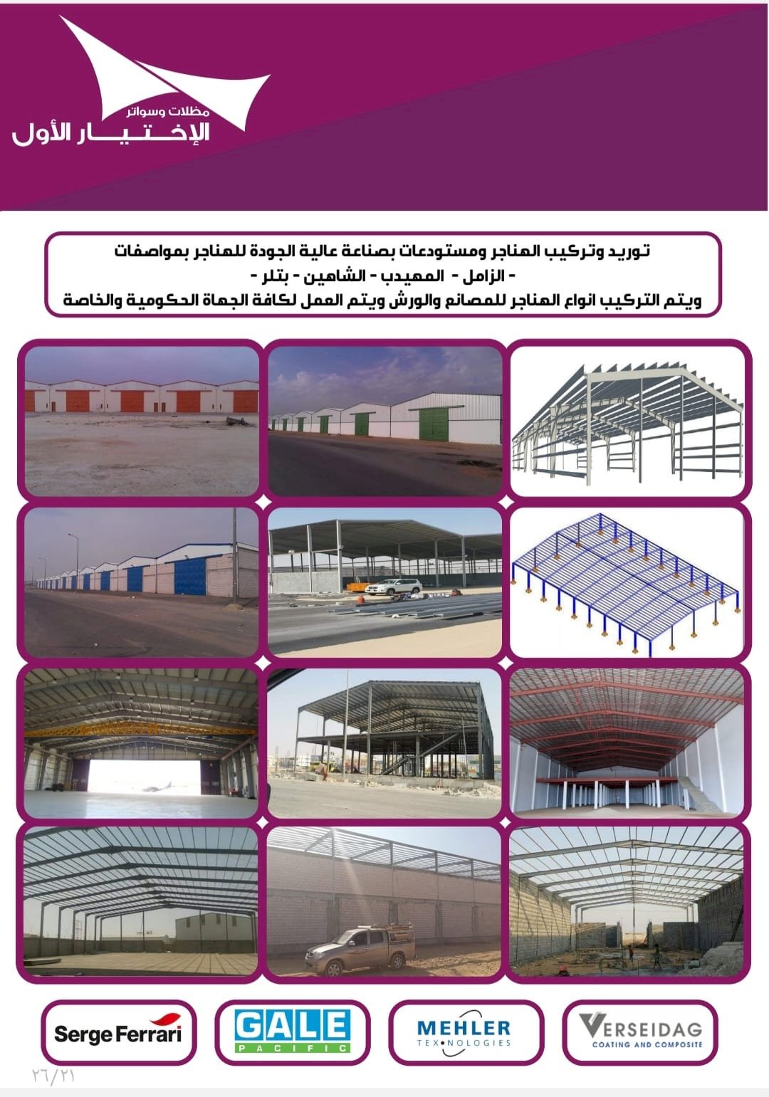 ننفذ مشآريع المظلات والسواتر والهناجر